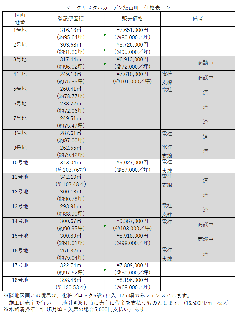施工は売主で行い、土地引き渡し時に売主に代金を支払うものとします。(16,500円/m:税込)